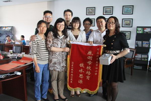 为了表达对母校的感激和怀念,91届的毕业生们为母校送上了锦旗和礼物,徐玉英校长也将“六一”节送给孩子们的小礼物——四册科学小绘本赠送给了这群平直曾经的孩子们留作纪念。