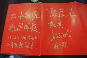二十年平直送走了一批又一批毕业生,二十年平直的老师也新老更替,换了一批又一批。曾经教过他们的老师,基本早已退休离开了平直,幸运的是还能找到现在留任的沈新霞老师,曾经一学期教过他们的数学。快六十岁的沈老师仍能一眼认出不少学生来,师生相见,相谈甚欢,过去读书时的场景又一幕幕浮现眼前。交谈中也让母校知道了这群毕业生,不仅长大,更是成才,他们中有的成为了大学教授,有的成为了报社编辑,有的成为了职能部门领导,有的求学海外,学有所成……