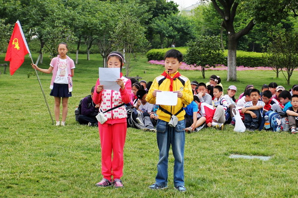 一大早,平直实小五年级全体师生走出课堂、走进自然,来到了桐泾公园。六月的大自然百花齐放、绿树成荫。一到公园,同学们围坐在一起,节目在五(1)班《左手右手》的歌舞声中拉开帷幕,孩子们通过歌声传达了自己内心的喜悦,他们通过舞蹈来欢庆自己的节日,许多节目设计得美仑美奂,同学们也将欢乐的心情表现得淋漓尽致。
