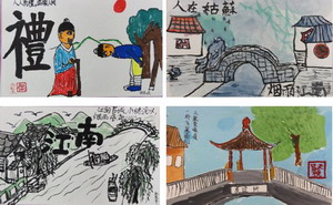 市画信活动是我们历年都参加的美术特色活动之一,学校在历届画信活动中早就形成了自己的艺术特色,全校学生参与面非常广,积极性相当高,作品的品质也越来越佳。看,这次同学们用笔墨在明信片上向日本小朋友介绍了自己的名字中一、二个字的含义和来源;介绍了自己家乡人间天堂的美;介绍了中国成语、谚语、俗语的丰富性;还画出了心中对两国小朋友友好相处往来的美好愿望,笔笔挥洒出自己非凡的美术功底,展现我校学生高超的绘画技能技巧。