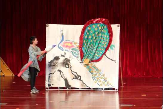 这个人物作为“创意变变变”的主题。我们的孩子利用画布和泼墨的技法将一只美丽的孔雀逐渐地展现在观众面前,最后“马良”神笔一点,孔雀展开亮丽得到尾羽,仿佛真的赋有生命!以此来展现:只要心地善良,刻苦努力,每个孩子都能成为“马良”,用自己的汗水勾画出属于自己的美好未来!