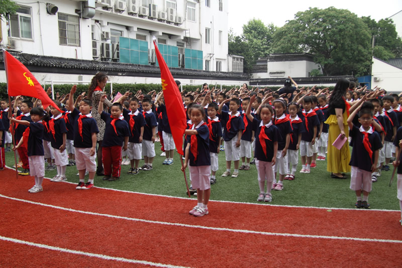 5月29日,苏州市平直实验小学的一年级新生迎来了属于他们的光荣的入队仪式。参加本次入队仪式的代表有校领导班子,党员家长、老师,团员老师。