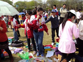 4月2日下午,运河公园的草坪上异常热闹,那里正在举行一场别开生面的平直义工妈妈团“儿童集市”活动:从看守摊位到制定价格,从挖掘客户到收钱找零,全部由孩子独立完成。150多个摊位前人来人往,吆喝声、讨价还价声此起彼伏……