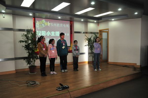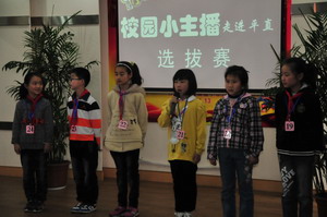 “如果你够自信,如果你够精彩,就来参加选拔赛!”活动一经宣传,不少同学都跃跃欲试,二到五年级每班推荐了十名同学参加初赛。经评委会选拔,全校评选出近五十名“希望之星小主播”进入复赛。这一次,孩子们可是使出浑身解数,一展风采。除了进行三分钟讲故事和才艺的比试,更引人注目的是情景剧的表演。孩子们六人一组,提前三天拿到表演的剧目,看到是喜欢的《西游记》和《喜洋洋》题材,更是来了劲头。他们分角色、准备道具、集中排练,有条不紊、像模像样。这样的精心准备,当天的复赛也有了很好的呈现——表演大胆、投入,充满着自信,逗得台下的小观众捧腹大笑,也让老师们刮目相看。