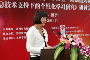 为探索在新形式下数字化多媒体教与学的有效方式, 2012年4月12日由苏州电教馆主办全国教育信息技术研究“十二五”规划重大课题《信息技术支持下的个性化学习研究》研讨会在苏州市平直实验小学召开。出席本次活动的嘉宾有:江苏省电化教育馆尤学贵馆长,上海市教育科学研究院现代教育实验室主任、研究员、华东师范大学博士生导师蒋鸣和教授,苏州市教育局周春良副局长,江苏省电化教育馆办公室徐晓梅主任,苏州市电化教育馆杨民生馆长,苏州市沧浪区教育局唐丽艳副局长等各界领导。