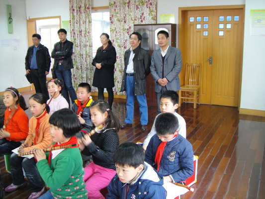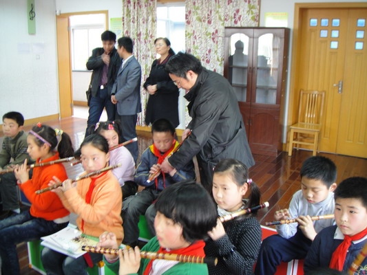 平直实验小学校作为艺术教育的前沿,按照通知精神,从2010年开始把民族乐器“竹笛演奏”引入音乐课堂,在1—3年级开设校本竹笛课程,拟在三年后,全校每一位学生都能掌握这一门艺术课程,让孩子们在掌握技艺的同时深入领会音乐内涵。到目前为止,我校已经形成了适用于课堂教学的较为完善的竹笛教学体系,并取得了阶段性成果,为探索“乐器进课堂”这一新课题迈出了坚实的一步!。昨日,江苏省竹笛协会的专家们再一次专程来到平直实小,视察学校的竹笛教学。