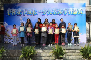 活动一开始,主持人就向全校师生宣布了一个喜讯:英语情景剧《红井》获得了第四届童心奥斯卡英语情景剧银奖,最佳指导奖,最佳剧本奖三项大奖。学校领导为演员代表及辛勤指导的老师们颁发了奖项,全校师生以热烈的掌声向他们表示祝贺。在总校杨书记、分校赵校长的一声令下,2012年平直少儿艺术节正式开幕,孩子们兴奋地举起右手,大声地呼喊出本次艺术节的口号:放飞梦想、展我风采,我秀我精彩。开幕式上徐校长致词:希望学生们勇敢的展现自己的风采,放飞自己的梦想,用心感受艺术,用行动实践艺术,把握这一年一次的机会,让艺术之花开遍平直的校园,更让艺术之花开遍学生的心灵,伴我们一生!最后,在轻快的小组唱中,开幕式落下了帷幕。