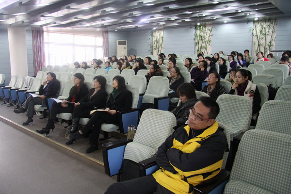 黄裕鸿副校长首先发表了讲话,他从“静心”引入,告诉我们教师首先要引导学生静下心来进行学习,不仅如此,作为老师也应该静下心来,静心去帮助每一个学生,去关注每一个学生需要什么,我们应该给予他们什么。此外,他借《泰迪的故事》,告诉我们,只要老师付出爱,学生必定能成才。故事中的那个不太优秀小男孩在老师的鼓励下终于成就一番事业,感人至深,也带给了全体老师极大的触动。随后,黄裕鸿副校长结合本校的具体情况给了老师几点建议,伴随着一个个小事例,黄校长指出,老师应该为学生献出天使般的爱。