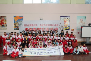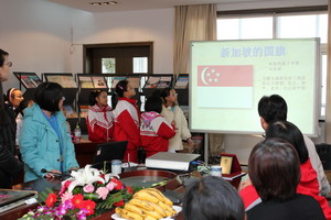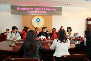 2011年12月1日上午,平直实小迎来了新加坡博理小学六位老师与二十二位学生。早晨八点半,平直实小的行政与教师代表、结对小伙伴热情接待新加坡同行。在接下来的交流活动中,博理小学校长介绍了办学理念与办学情况,学生代表通过中文和英文结合图文介绍了自己眼中的新加坡。我校徐校长介绍了学校的办学理念、师资队伍及办学特色,并与博理小学互赠礼物。接下来的两节课,新结识的伙伴手牵着手进入课堂,博理小学的师生与平直实小四(3)班的同学同上了由吴婕老师、杨念文老师执教的数学课《找规律》、语文课古诗《元日》,新加坡学生融入了课堂,提前感受热闹、喜庆、团圆、祥和的中国年,同时接受了中国传统文化的教育与熏陶,零距离地接触了华文学习,整个交流非常融洽。平直实小的学生将中国孩子热情诚恳、文明礼仪、好学上进的良好风貌展现给了每一位客人。活动一直持续到中午十一点十五分才不得不结束,而此刻两校的小伙伴已成为了亲密无间的好朋友。