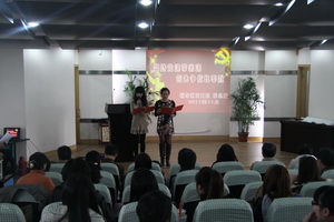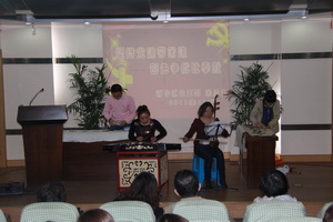 活动后半部分先由辅导区团总支书记毛蓉芳汇报了团建如何在组织建设、班子建设、队伍建设和作风建设上创新方式跟进党建。特别对团员在思想、师德、学习、业务四方面如何跟进党员进行了具体的介绍。接着与会团员代表激情昂扬,纷纷以书法、唱歌、扬琴、二胡、演讲等自己的方式传递着焕发青春的心声。团员们挥洒着豪情,弹奏着强音,抒发着斗志把活动推向了高潮……
