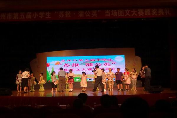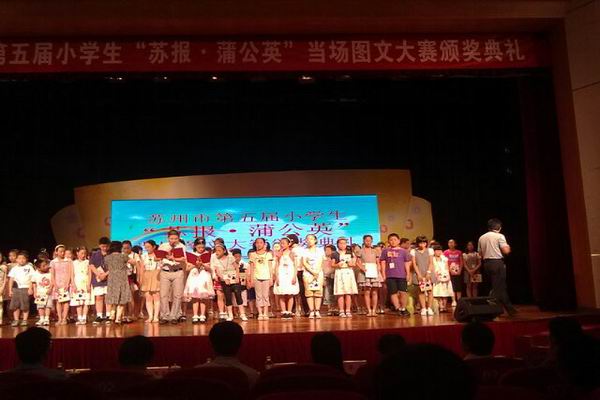 第五届“苏报蒲公英”小学生图文当场作文大赛昨天在沧浪少年宫举行了颁奖典礼。 颁奖典礼在平直师生表演的《紫丁香》中拉开帷幕,激情澎湃的诵读节目展现了当代小学生尊师重道、昂扬向上的精神风貌。