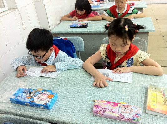 雅言传承文明,经典浸润人生 多年来我校通过丰富多彩的活动将“经典诵读活动”不断传承、继续,并逐渐绽放出独特的风采。一二年级以《弟子规》《玉兰经》《二十四孝》为教材,三四年级以《小学生必背古诗八十首》为主要内容,五六年级以《白居易诗词》为重点,开展了日不间断的诵读活动。我们依据小学生的身心特点,着眼“熏陶”,注重“感悟”。 每周一节的一节诵读兴趣课活动形式活泼有趣;音乐课教唱《跪羊图》《明日歌》《虞美人》《赋得古草原送别》等歌曲,美术课引导学生给古诗配画如《新二十四孝》,更使诵读经典渗透到各科教学中。以“白居易的诗韵苏州”为主题的经典诵读展演活动在让学生了解学校历史的同时激起学生诵读的热情。引领孩子们在玩中、在乐中诵读经典,真正让学生做到“乐读”、“美读”,从而激发学生诵读兴趣,在读中感受祖国语言文字的形态美、意态美和韵律美,从而亲近并热爱母语,景仰祖国悠久文化,收到情的感染,美的熏陶。