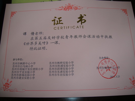 3月25日,在横塘中心小学举行了第五届“友好杯”青年教师会课活动,参加会课的学校有:枫桥中心小学、枫桥实验小学、横塘中心小学、白马涧小学、胜浦实验小学、澄阳小学、斜塘实验小学、平直实验小学、东渚实验小学、新城花园小学、车坊实验小学、通安实验小学。会课活动分为语、数、英三个大组,其中语文组有低、中、高三个年级,向大家呈献了《世界多美呀》、《你必须把这条鱼放掉》、《鸟语》、《月光启蒙》四堂生动的课。其中我们平直实小谭倩老师上的《世界多美呀》获得了大家一致的好评。谭老师在备课、上课中有意识地向构建有效语文课堂努力,通安实验小学的顾文雄校长评课时说,谭老师做到了内容有的、教师有备、学生有趣、活动有序、教学有方、训练有素、课内有得、课外有路。本次会课活动既展示了几位青年教师的扎实教学功底,又让彼此教学得到了交流,从而达到了不断提升教学水平的目的。