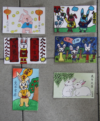 在百年校庆的欢乐日子里,我校200位小朋友又积极参加市“兔年画兔,画信传情”的比赛,在3位美术老师的认真指导下,他们用毛笔、水墨、色彩表现了自己喜迎平直101岁和2011新年即将到来的欢喜心情,看,他们的画信作品多棒呀!