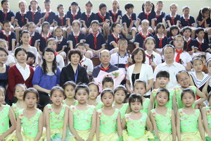 教授观看了儿童舞蹈《茉莉花》、教师演唱《望月》,并亲临指导了校乐队小学员的琴技。