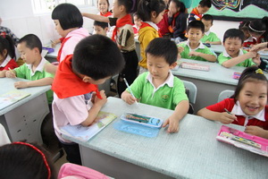 在学校老师们的热情接待下,小朋友兴致勃勃地参观校园 、教室、操场。活动先由低年级的顾老师向孩子们介绍了幼儿园与小学生活的区别,及作为一年级小学生应该遵守的行为规范。而后,小朋友们进入教室,也试着当一回一年级小学生。在一(2)班的教室里,由一年级的小哥哥、小姐姐将幼儿园的弟弟、妹妹领到自己的座位,并手把手地教给他们正确的坐姿和读书、拿笔姿势,齐声朗读了《上课歌》。孩子们亲眼看、亲耳听、亲身体验,纯真的眼睛中闪烁着对未来小学生活的期待与憧憬。
