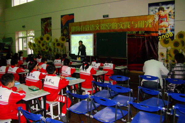 在活动中,区语文骨干研修班的几位老师为大家献上了一道丰盛的教育盛宴。孙莉、杭凤娣、张瑾老师执教了三下《槐乡五月》;叶虹、袁平霞老师执教了六上《牛郎织女》一课,她们围绕同一教学内容,根据自己对文本的理解和独具匠心的教学设计,运用不同的教学方法、精练的教学语言和多样的教学手段,精心组织课堂教学活动,将新课程理念很好地融入到了课堂教学之中,学生们在愉快中接受着丰富的知识,在思考中碰撞出智慧的火花,从而促使听课教师在比较中互相学习、互相借鉴、扬长避短、共同提高。