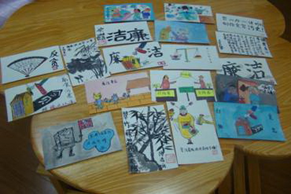 板报与学习园地是班级精神文明面貌的重要体现,我校各班利用板报与学习园地进行廉洁文化的宣传。各班的小朋友都自发地寻找廉洁相关的资料,进行整理与归纳,将它们写上板报。