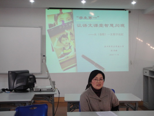 2009114下午,在平直实验小学的多功能教室开展了“学生第一,让语文课堂智慧闪现”的语文主题研讨活动。杭凤娣、姚园静两位教师本着“学生第一”的教育理念,一同开展了国标本第七册《春联》的教学活动。同题异构的两堂课精彩纷呈。姚园静老师的课虽然仍然显得稚嫩,但是从课件和教学设计来说还是非常用心的,尽力地让学生想起来、说起来、动起来。杭凤娣老师的这一节《春联》是一堂非常精彩的示范课。仅仅扣住课文中心,让孩子沉浸到新春佳节的喜庆气氛之中。杭老师的课教师提点得不多,但十分精当,通过她的点拨,真正地体会到了孩子的变化,朗读变得抑扬顿挫了,理解变得越来越全面了,回答变得越来越精彩了,表现变得越来越积极了,整个课堂都活起来了。在最后学生的当堂练习中,能看到这堂课是有效的,学生在课堂上是有所得。