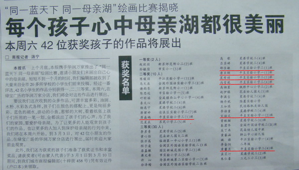 寒假里我校孩子们积极响应中央号召,争当"四好"少年:争当热爱祖国、理想远大的好少年,争当勤奋学习、追求上进的好少年,争当品德优良、团结友爱的好少年,争当体魄强健、活泼开朗的好少年,在家里,在社会上都努力去做一个人见人爱的好孩子,真正过上了一个健康有意义的寒假,他们有的参加了社区为孤老送温暖活动;有的在家里为父母分担家务,做一些力所能及的事;有的利用年前的宝贵时间继续参加少年宫的兴趣培训,发展自己的爱好,其中一项最有意义的活动就是他们积极参加了由城市商报和华润万家推出的中低年级小学生“同一蓝天下、同一母亲河”绘画大赛,全市42位小朋友分别获得了一、二、三等奖,我校有7位小同学榜上有名,其中二等奖1名,三等奖6名。他们以实际行动来证明自己过了一个多么积极有效的寒假,把争当"四好"少年的行动落实到了实处,如今,他们已回到了学校和课堂,以饱满的精神投入到新学期紧张有趣的生活中来了。
