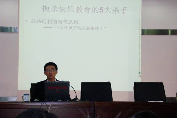 10月21日平直实验小学教师个个面带笑容地走出报告厅,原来学校邀请了专家为老师们开设了一堂《快乐的教育》的讲座,讲座有幸请来了苏州大学教育学院应用心理学院吴铁钧博士主讲。通过讲座教师们意识到作为一名教师“快乐教育”是何等重要,教育中消极情绪的危害远比我们想象得要可怕,它不仅可能弱化教育效果更会损害教育者威信损害教育者和被教育者的健康,消极的情绪会像瘟疫一样蔓延开。吴铁钧博士帮老师们分析了产生消极情绪的原因,同时也引导大家如何管理情绪——做一名快乐的教师,“有快乐的老师,才有快乐的学生。有快乐的家长,才有快乐的孩子。有快乐的家长和老师,才有快乐的教育”。6个“有”让老师们豁然开朗。