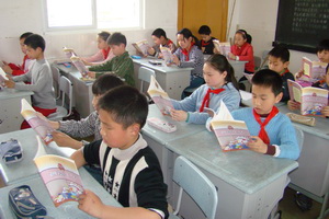 学校在组织专人发放读本的同时,更是遵循节约资源,循环使用的原则,制定了相关措施,要求各班实行班主任负责制或任课教师负责制,保证正常使用和存放;教育每位同学保持读本卷面整洁,爱护图书,严禁涂改;各班做好校园读本使用情况记录等。以保证学生能广泛有效地阅读,以读促学,以读养学。
