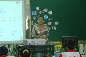 新城一实小的张瑾老师一上台,就用多啦A梦和大雄拉近了和孩子们的距离。她的课生动有趣,饱含童真,先进的电子白板在她的灵活运用下使每一位听课老师都发出啧啧赞叹,孩子们更是在愉悦中获取新知,在快乐中消化知识。