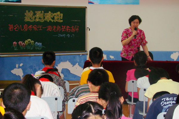 9 17 下午,雨后的空气格外清新,著名童话作家王一梅老师走进了美丽的平直实验小学校园,走进了天真可爱的小读者中间,与五、六年级的小朋友共度下午的美好时光。