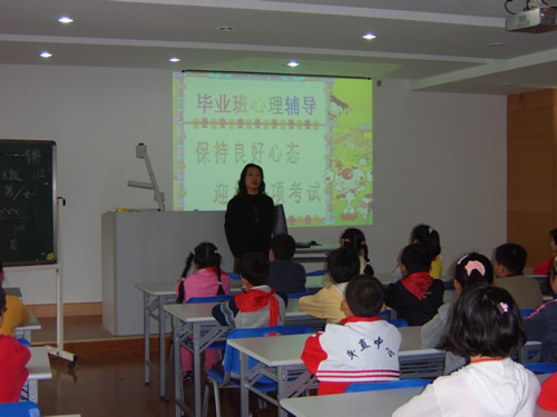 在社会竞争激烈,家长又寄予殷切希望的情况下,孩子们面临考试时,心理上要承受很大的压力。为了让同学们有健康的心理状态迎接考试,4月28日,我校的徐桢老师为六年级毕业班的学生进行了一次考前的心理辅导。