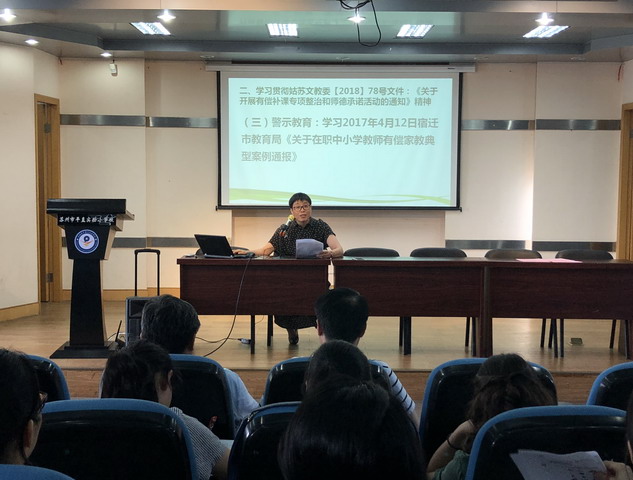 会上,季书记首先传达了姑苏区文教委《关于开展有偿补课专项整治和师德承诺活动的通知》精神,并带领全体与会人员认真学习了教育部2015年6月29日颁发的教师〔2015〕5号《严禁中小学校和在职中小学教师有偿补课的规定》通知中提到的六条严禁,并借助2017年4月12日宿迁市教育局《关于在职中小学教师有偿家教典型案例通报》,对老师们作了警示教育。