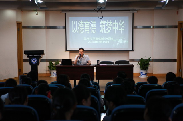 为认真贯彻党的十九大精神和习近平总书记关于教育工作、争做“四有好教师”重要指示,严格落实立德树人根本任务,2018年9月19日下午,苏州市平直实验小学全体教师济济一堂,开展了题为“以德育德 筑梦中华”的师德师风培训。此次培训学习活动由辅导区党总支书记季文学主持。