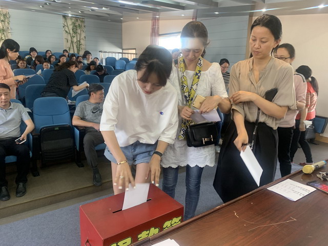 随后全体教师认真按照填表要求填写了《2019年姑苏区教育单位领导干部民主测评表》,并投入了投票箱内。