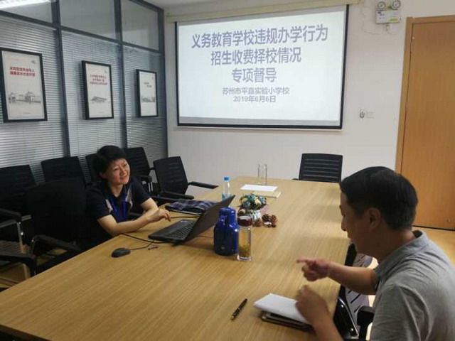 2019年6月6日下午,姑苏区人民政府督导室专职督学倪建平、兼职督学季文学来到平直实验小学校,对学校的招生、收费、择校等情况进行专项督查。