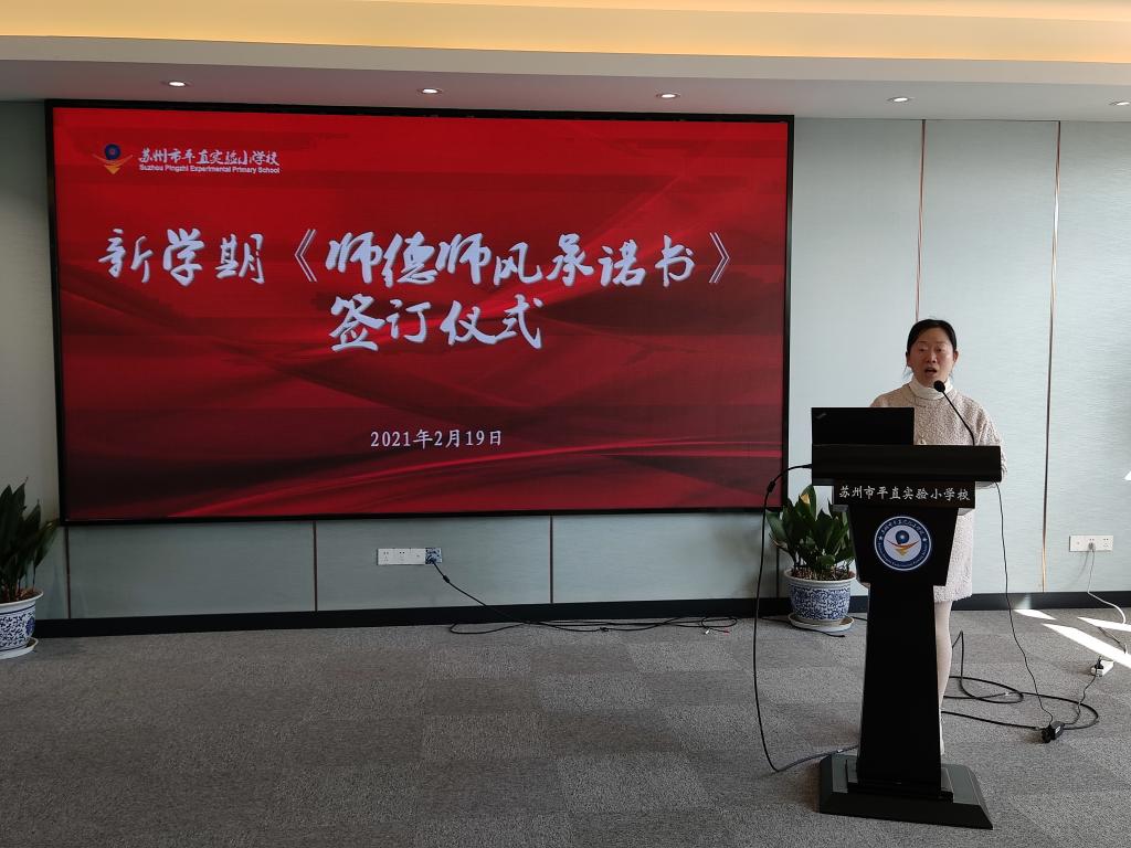 学校各部门分管行政首先就各条线工作提出了新学期的工作目标及要求。德育处王颖主任对加强日常德育管理、切实关心学生的学习与成长等方面提出落实措施;教导处陆虹主任对开学初各学科计划制定、教学常规管理以及科任教师调整等作了详细解读;教科室王飞主任进一步明确新学期教科研工作的思路和目标,调动广大教师开展教科研工作的积极性和主动性;总务处韩栋主任对学校安全常规工作进行了细致安排,并强调对于疫情防控仍然需常抓不懈,继续严格落实防控要求,保证健康安全的学习环境。随后,办公室毛蓉芳主任组织全体教师签订师德师风承诺书,要求全体教师进一步规范自己的教育教学行为,努力提高自身师德修养。