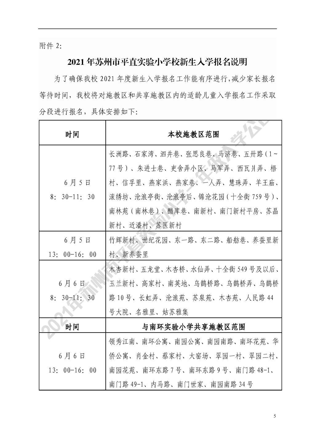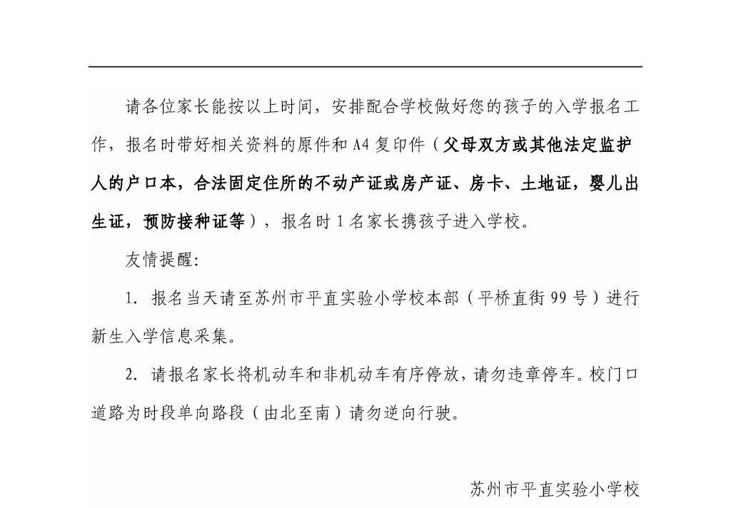 2021年苏州市平直实验小学一年级入学公告