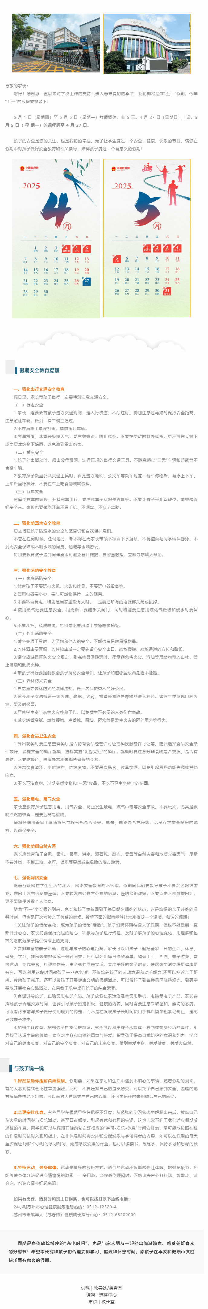 五一劳动节放假安排及安全教育提醒