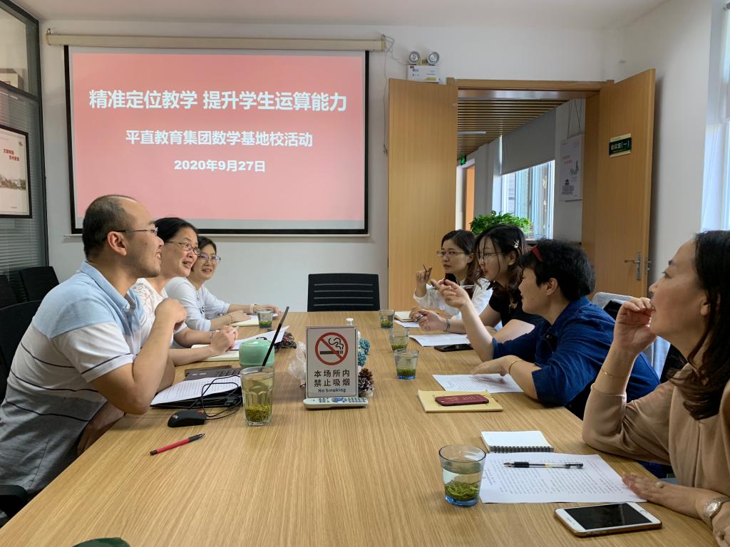 9月27日,苏州市平直教育集团数学基地校暨集团数学领雁名师工作室开展了第一次教研活动。姑苏区 教师发展中心的范蓉老师、平直教育集团数学领雁名师工作室王兰副校长及集团内五所学校的数学分管 领导参加了本次活动。