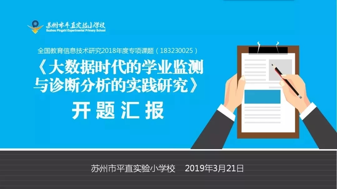 近日,我校申报的国家级教育信息技术研究专项课题《大数据时代的学业监测与诊断分析的实践研究》开题论证会在金阊实小举行。苏州市电化教育馆张兰娟副馆长和苏州市教育质量监测中心薛瑾副主任进行现场点评。