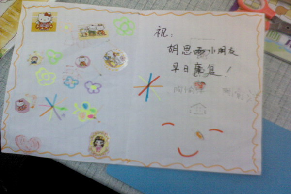 3月5号学雷锋小朋友都从身边事做起,校园里都是一个个小雷锋。对于一(1)班的小朋友来说,今天也是特殊的日子。他们班的小雨小朋友因为不小心把脚摔坏了,一直在家养伤,很久没来学校了,小朋友都很想念她。一(1)班的小朋友主动和班主任老师提出,想在学雷锋的日子里,为小雨送上自己的祝福。所以在3月5号这个日子里,一(1)班的小朋友一起做了“祝福花”,另外每个小朋友也自己做了想给小雨的卡片等,表达了对小雨的想念之情,同时也鼓励小雨,希望她早日康复,回到大家身边。