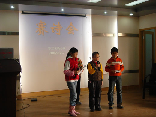 本月是平直实验小学的阅读节,星期五下午的报告厅举行了一场别开生面的“赛诗会”,三、四年级的各位选手成了一个个小诗人,台上的他们激情昂扬。