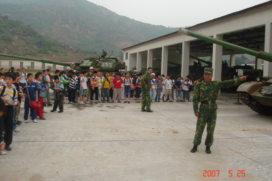 5 月25日 ,平直实验小学五年级的全体学生来到光福坦克部队进行社会实践活动,同学们在这里参观了坦克、士兵营房,观摩了侦察兵训练,由于亲眼目睹了坦克、模拟发射器,还有众多的高科技户动军用产品,孩子们显得异常的兴奋。此次活动不仅让同学们了解了军营的设施与装备,感受了军营的训练与生活,更激发了他们对军事装备、先进武器的兴趣,这在学校科技节期间,的确可以算的上是给孩子们带来了一顿实实在在的丰富的“军事科技大餐”。