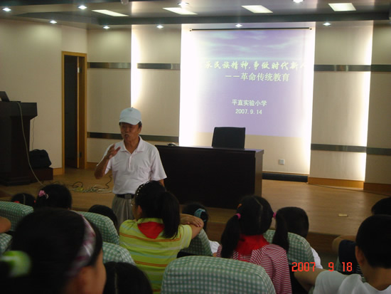 为了弘扬爱国主义精神,缅怀革命先辈的丰功伟绩,丰富教育活动的内涵,  9月18,革命老红军陈福兴爷爷来到我校,为我们五年级的同学们上了一节意义深远的革命传统教育课。