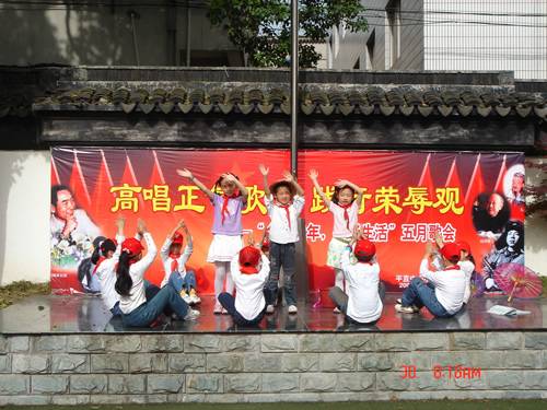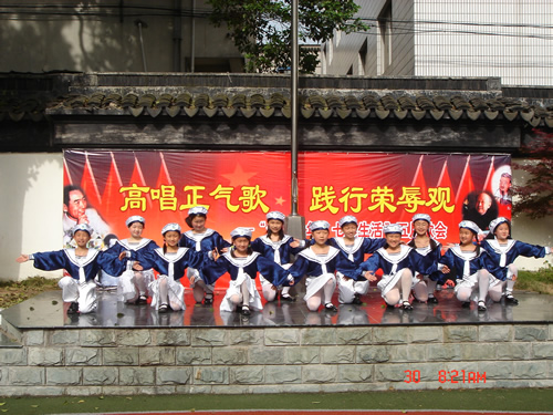 全校同学热火朝天地准备着,红色的歌曲从每一个课堂飞出,落在操场,带回家中,在每个人的心头荡漾,汇聚成今天的主题“高唱正气歌,践行荣辱观”。 同学们纵情高歌,用美妙的歌声诠释着对正义的理解,歌唱着金色的童年,七彩的生活。
