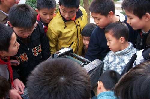 区领导来校参观我们的校园科技节,有声有色的科技展示非常吸引人.