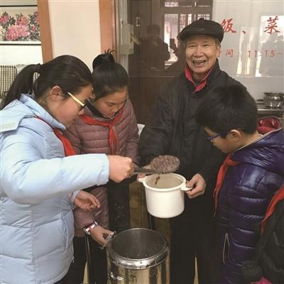 1月12日,正值三九严寒,学校全体师生在大队部的倡议下,开始收集腊八食材原料:枣、花生、胡桃、苹果、梨、香蕉、桂圆肉、瓜仁、米仁、赤豆……大伙儿以小组为单位精心记录下每一样食材的营养成分及价值,并一起学唱《腊八歌》:大雪纷飞腊月到,一年节俭到今朝;积得粮食烧锅粥,暖暖和和度寒宵。1月14日,在欢欢喜喜的期待中,大伙儿迎来了过腊八节、吃腊八粥的日子。老师说:“今天是腊月初八,同学们请用腊八粥。”孩子们齐声答道:“谢谢农民伯伯,谢谢爸爸妈妈,谢谢老师,谢谢同学,大家请用!”与此同时,学校的一部分党团员老师及青年志愿者教师代表、学生代表、平直家委会成员、义工妈妈团由校领导率队,兵分三路,走进沧浪培智学校、“苏信女儿家”、“西美社区”,给那里的小伙伴们、老人们送去一碗碗暖暖的腊八粥、一个个精彩的节目,献上一份份暖暖的大爱。分享的快乐,在潜移默化中,融进了每一个孩子的心……