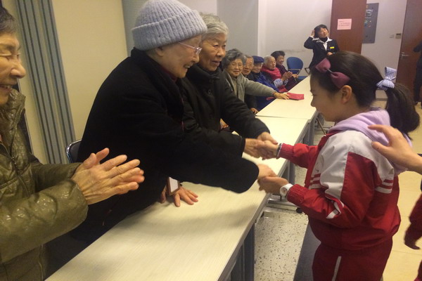 孩子们和老人们围坐一起,看节目、猜灯谜,欢欢喜喜迎接元宵佳节的到来。参与活动的六年级红十字会会员们,这是他们离开母校之前最后一次来看望爷爷奶奶了。和老人们聊聊自己的学业、给老人们锤锤肩膀,享受着温馨而又幸福的时刻。