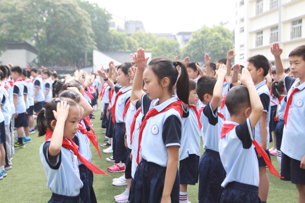 今年的入队礼是本次校园艺术节的第一个重要活动,新队员们,从踏进校门的那一天起,心里就埋藏下一个愿望:早日带上鲜艳的红领巾,成为一名光荣的少先队员。今天,在这特别的日子里,平直的小伙伴们相聚在一起,举行庄严的少先队入队仪式!火红的队旗高高飘扬,指引前进的方向;鲜红的领巾系满理想,承载着扬帆远航的梦;嘹亮的队歌声响彻天空,唱出每一个孩子的心声。父母殷切的眼神、学弟学妹们羡慕的微笑中,新队员们郑重高举手臂,敬了一个标准的队礼!