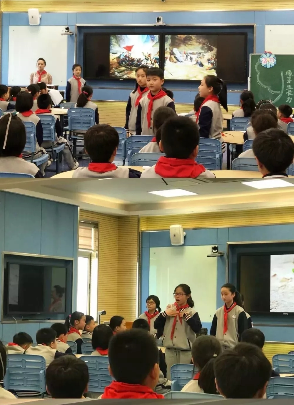 今天各中队在教室里也开展了以“习爷爷教导记心中”为主题的班队活动