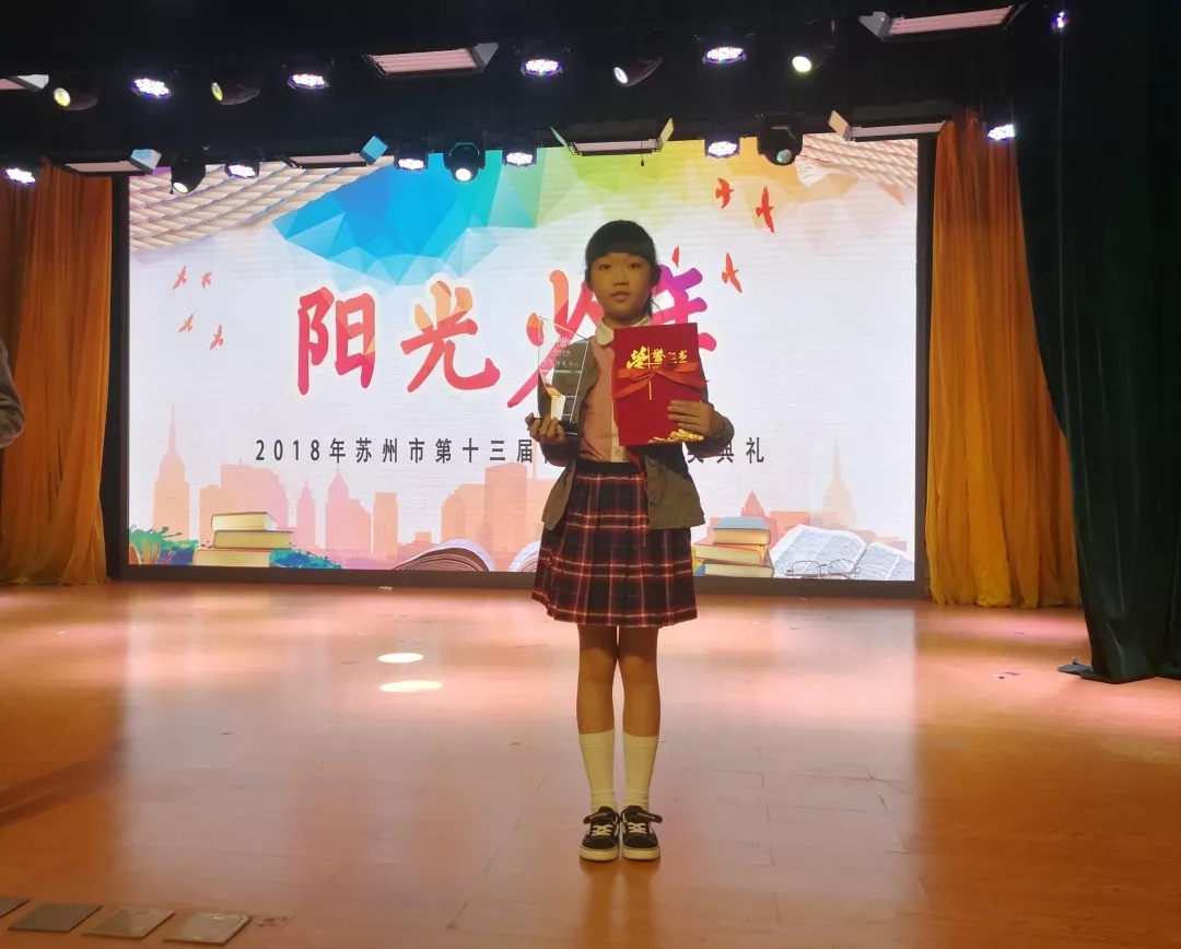 近日,万彩网100线路的“箬竹红领巾解说员社团”参加了在苏州市第三中学大礼堂举办的2018年苏州市第十三届阳光少年颁奖典礼,社团社长庞铭怡同学作为社团代表上台领取了“苏州市十佳阳光团队”的荣誉证书。