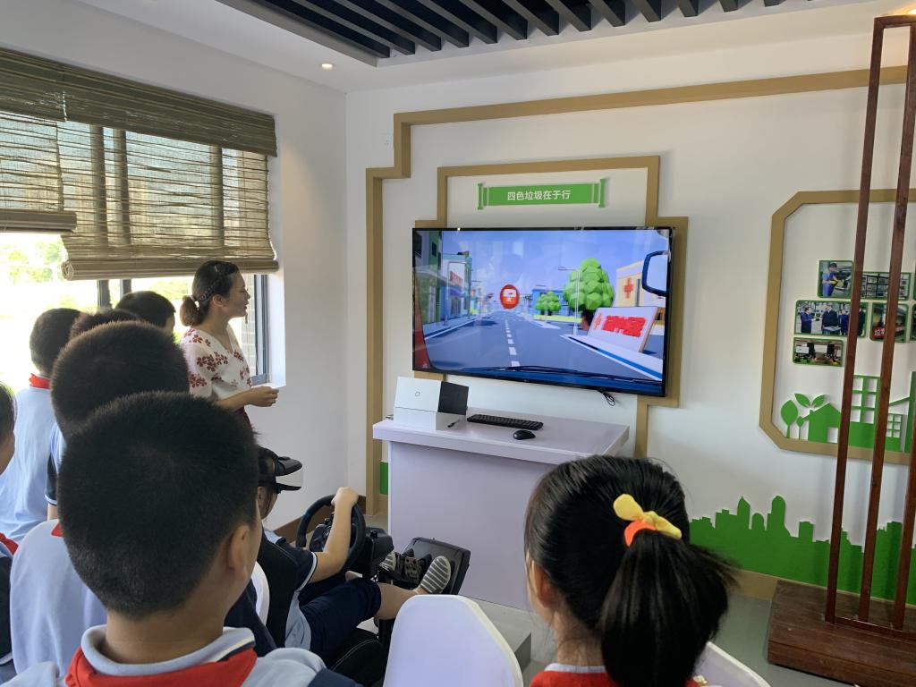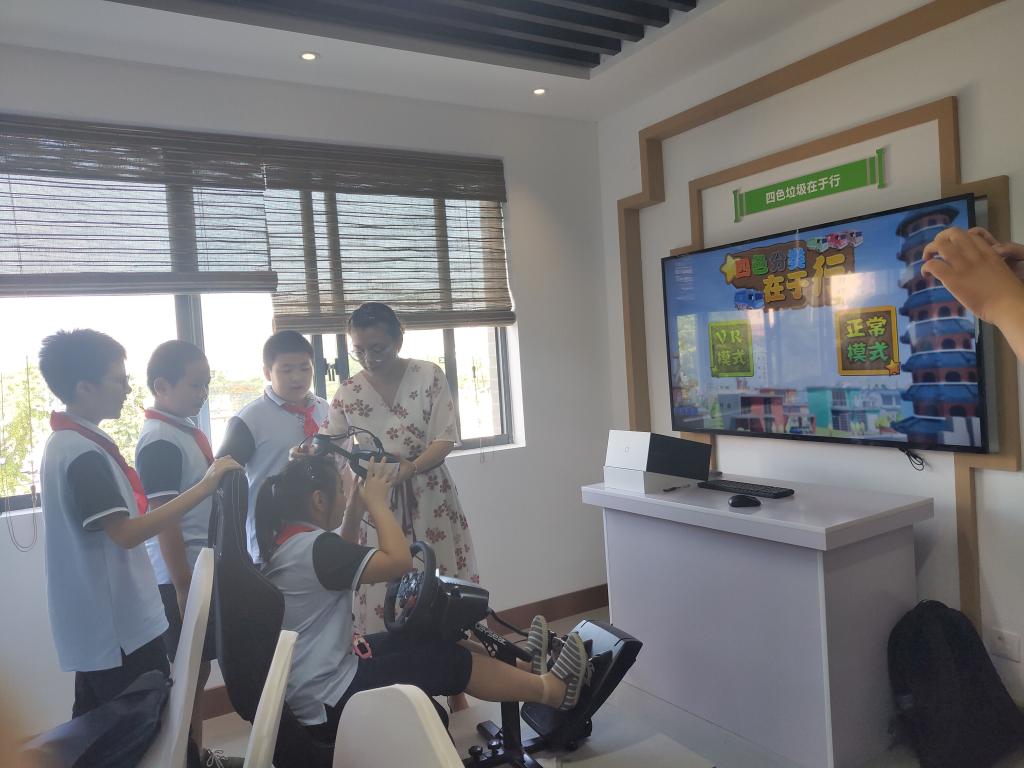 爱玩是孩子们的天性,环卫所的叔叔阿姨们还为大家准备了有趣的游戏呢!大家分为两组,一组体验了垃圾分类的体感VR游戏,驰骋在垃圾分类的大街上,给一个个垃圾找到自己的“家”;另一组动动小手,玩起了贴贴纸游戏,把垃圾贴到对应的垃圾筒旁。瞧,贴得多么认真呀!
